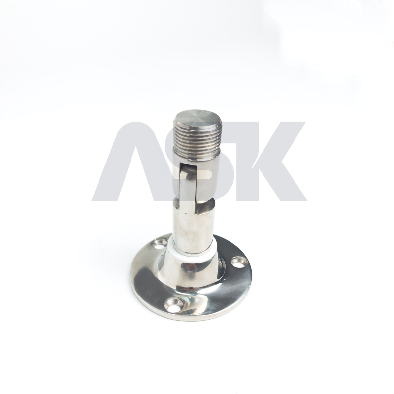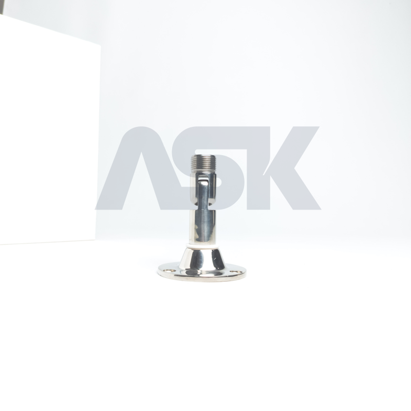 bracket ini terbuat dari bahan tahan korosi, seperti kuningan berlapis krom atau stainless steel, yang memastikan daya tahan dalam lingkungan laut yang keras. dirancang khusus untuk pemasangan antena di dek atau sisi kapal, dan kompatibel dengan ferrule berulir standar 1"-14 yang dimiliki antena tersebut.